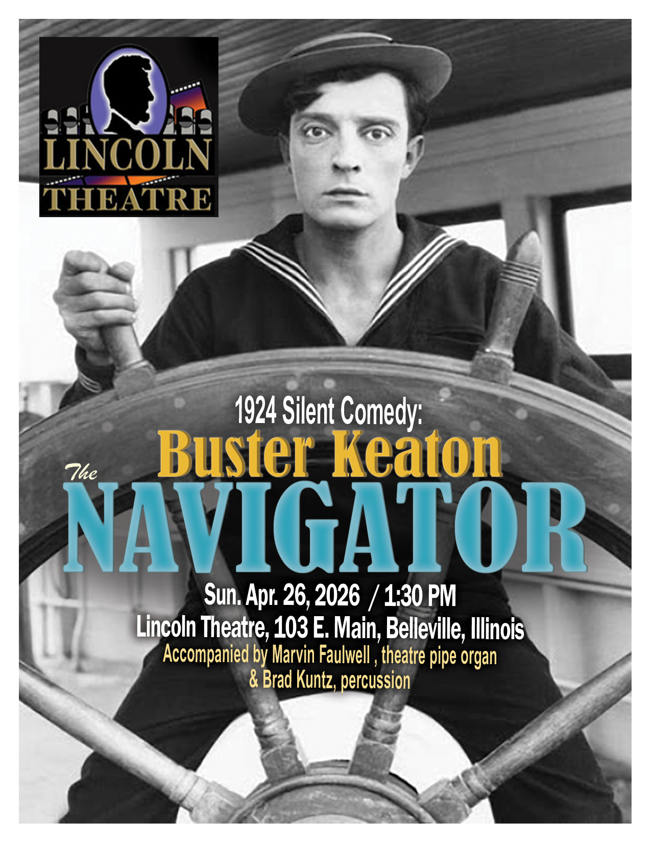 The film will be accompanied by Marvin Faulwell at the mighty Lincoln Theatre Pipe Organ and Brad Kuntz providing additional percussions.